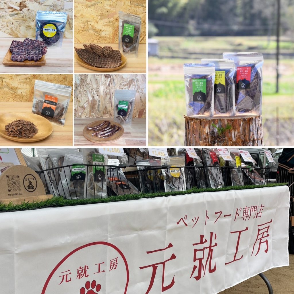 安芸高田市で捕獲された鹿肉を使ってペットフードの製造販売しています。噛む力が弱くなったシニアのワンちゃんでも食べることが出来るように薄さにこだわった鹿肉ジャーキーになります。